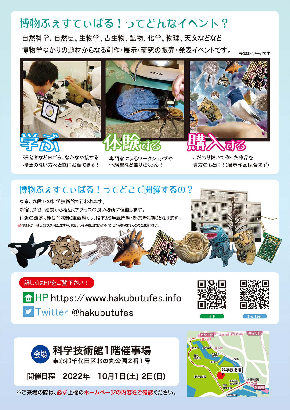 10月1日(土)2日(日)に東京 九段下科学技術館にて開催される『博物ふぇすてぃばる』に初出展いたします!