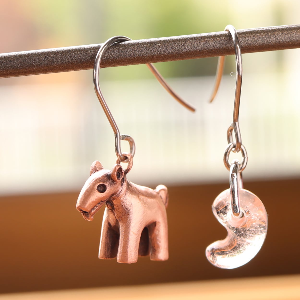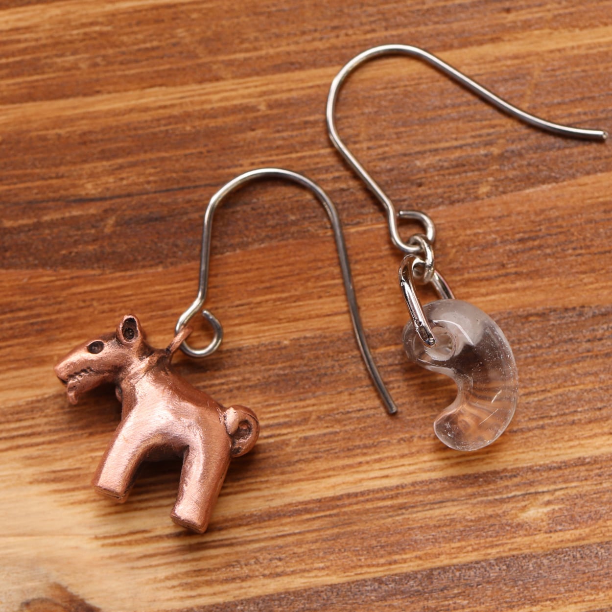 古墳時代の犬形埴輪と水晶の勾玉のペア フック式ピアスです。