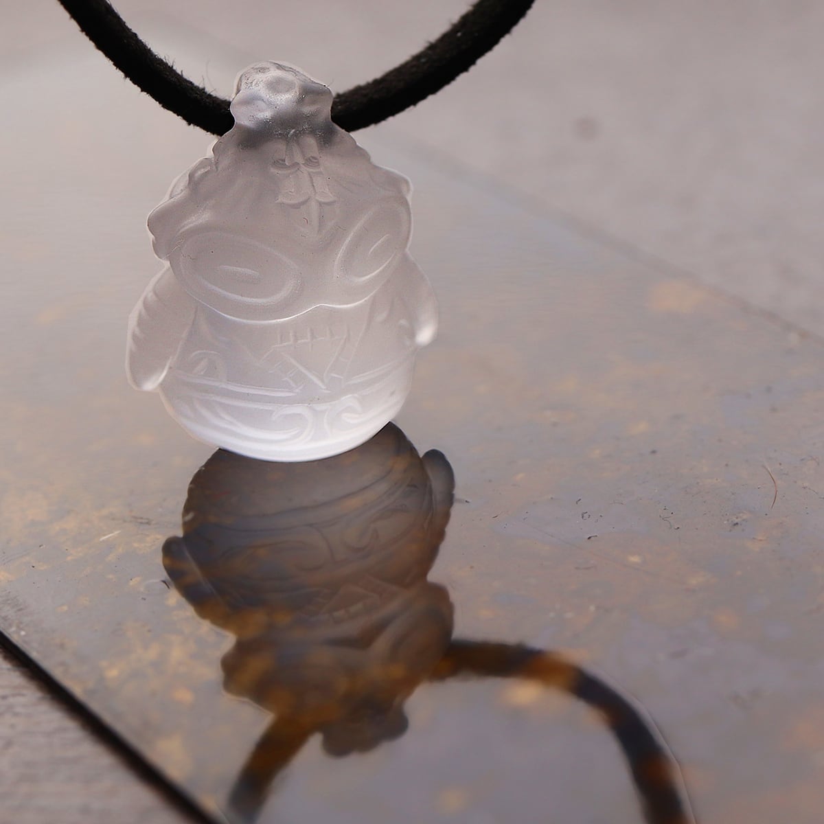 すりガラスのようなフロスト加工を施した、柔らかな輝きが特徴の水晶ペンダントです。