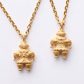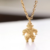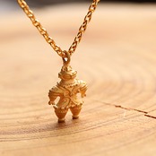 約9mmという小さな米粒サイズながら、細部の緻密な装飾まで忠実に再現された、精巧な遮光器土偶のネックレスです。