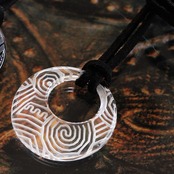 ペンダントの文様は、山梨県立博物館に展示されている**「渦巻文土器」**から写し取ったものです。