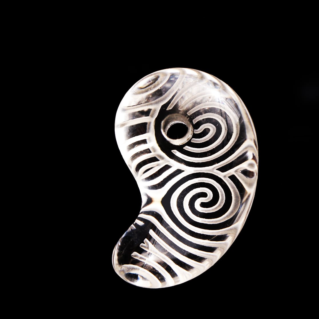 縄文文様 水晶勾玉アミュレット【渦巻文様】(700-174)