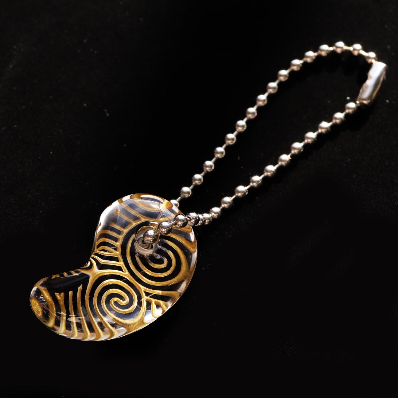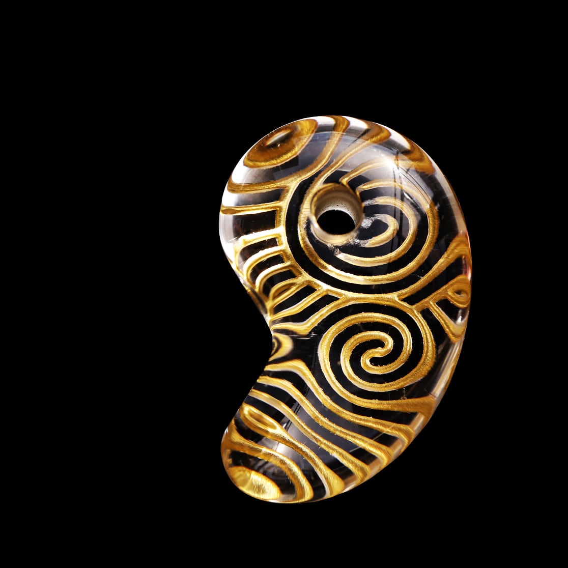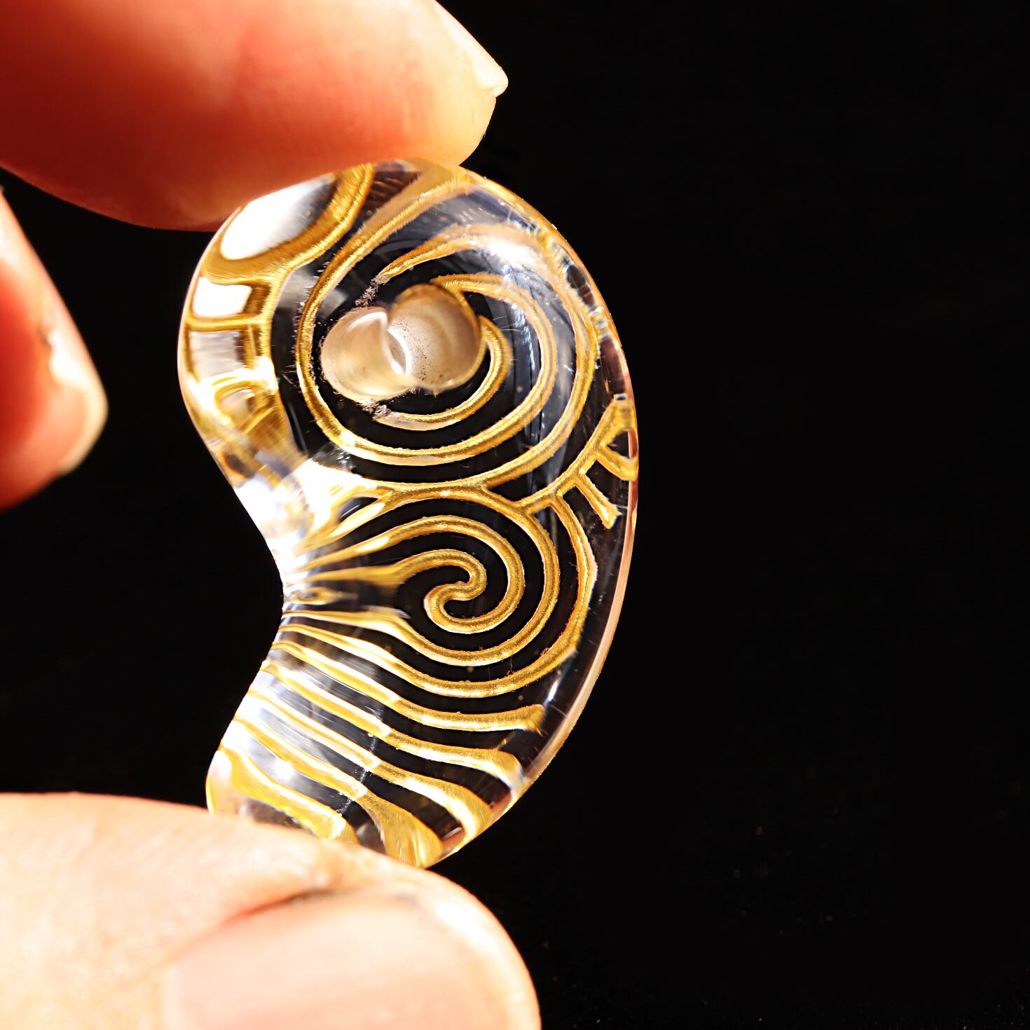 縄文文様 水晶勾玉アミュレット【渦巻文様/金色】(700-175)