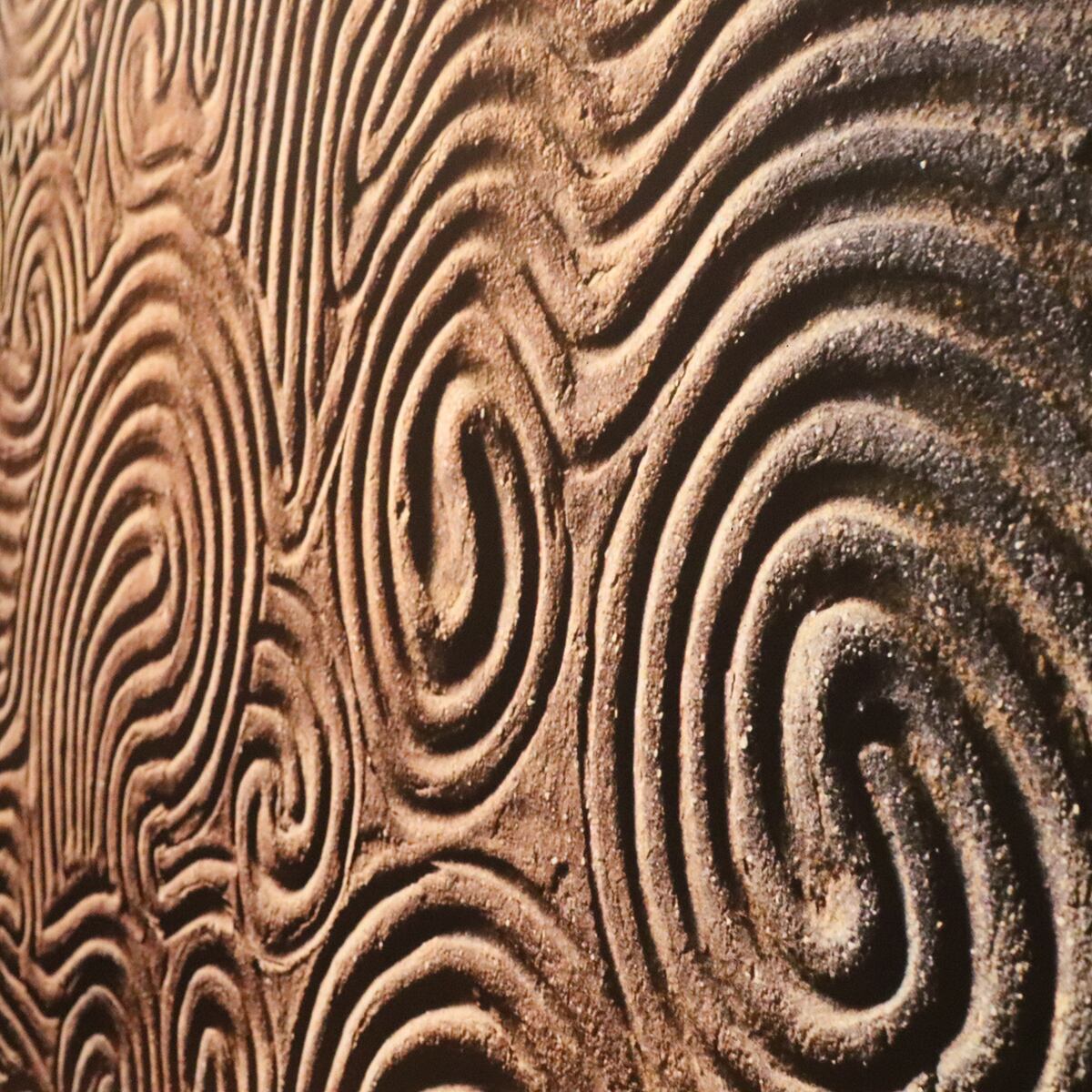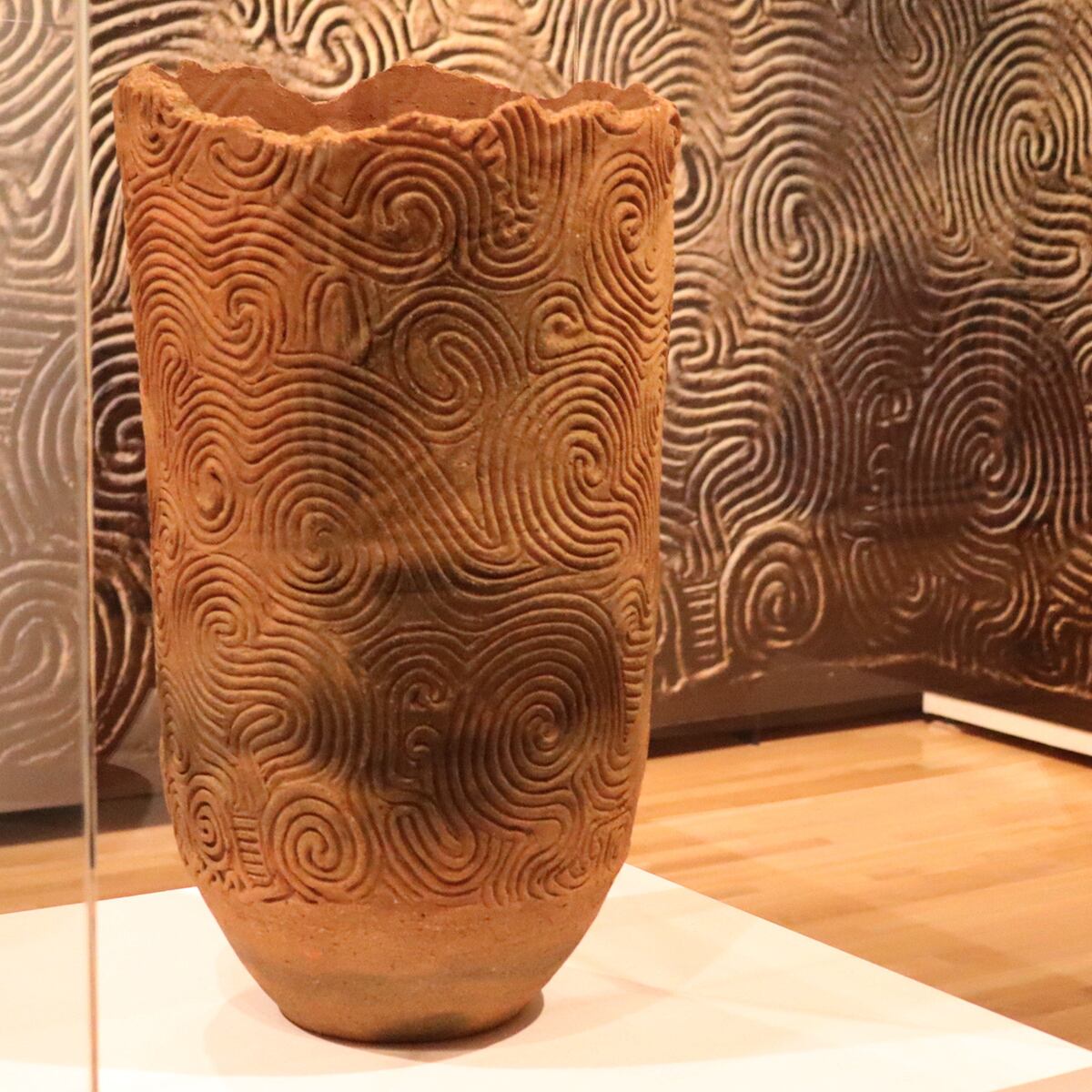 山梨県立博物館に所蔵されている、縄文時代中期の「渦巻文深鉢(うずまきもんふかばち)」をモチーフにしました。