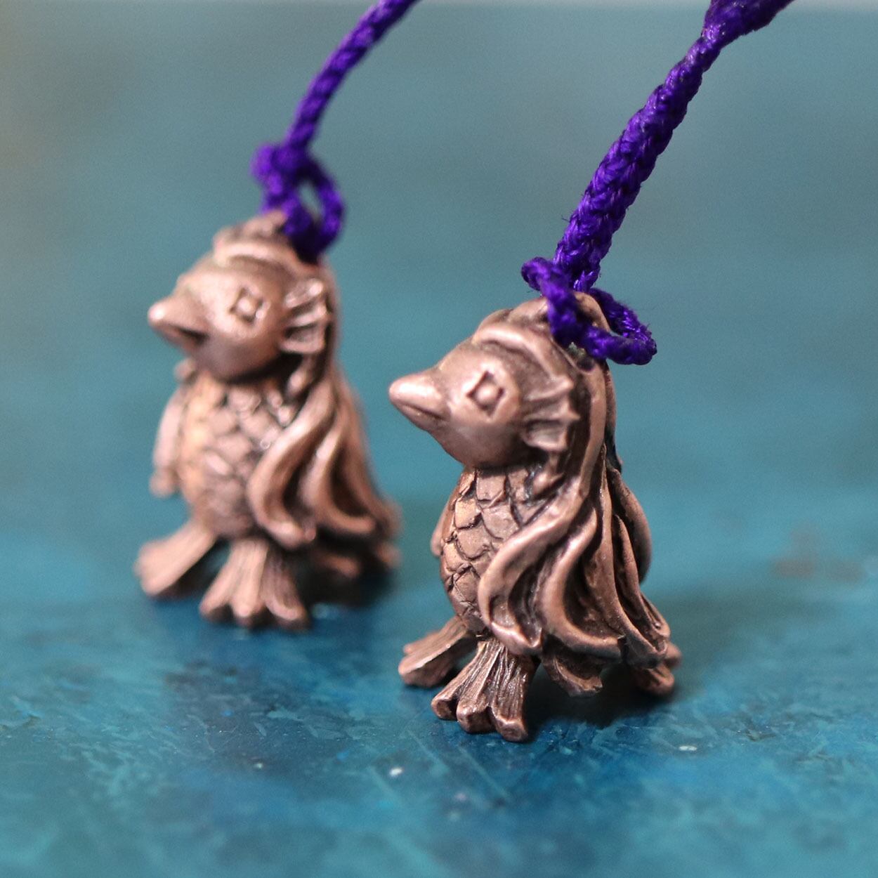 ピンクのアマビエ 純銅お守り (659-215 / 根付・ストラップ)