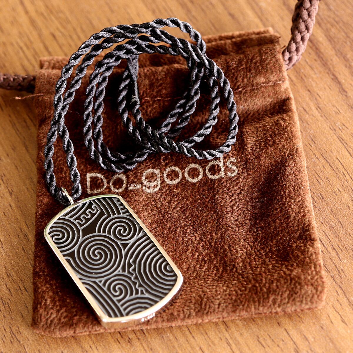 オニキスのプレートに縄文土器の文様を彫刻したペンダントです。