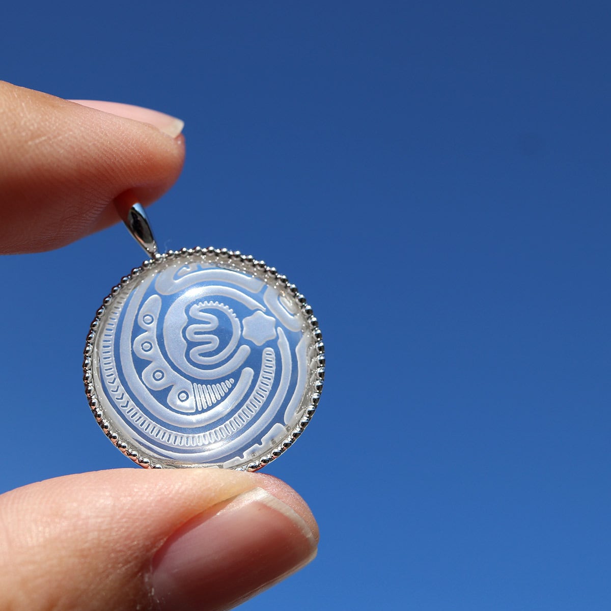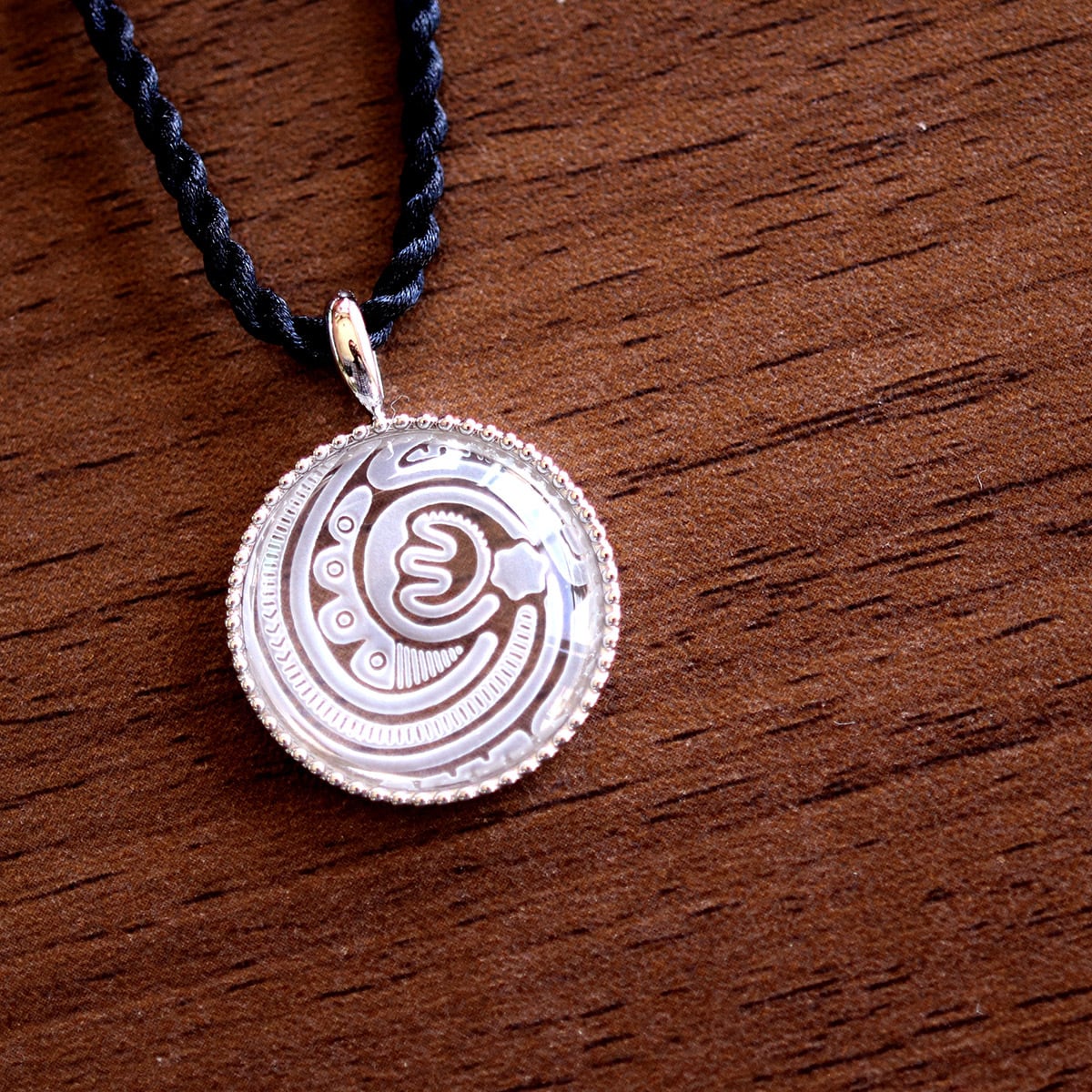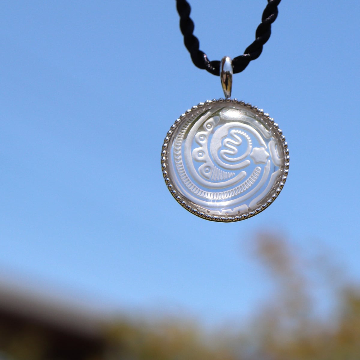 水晶に縄文土器の文様を彫刻したペンダントです。