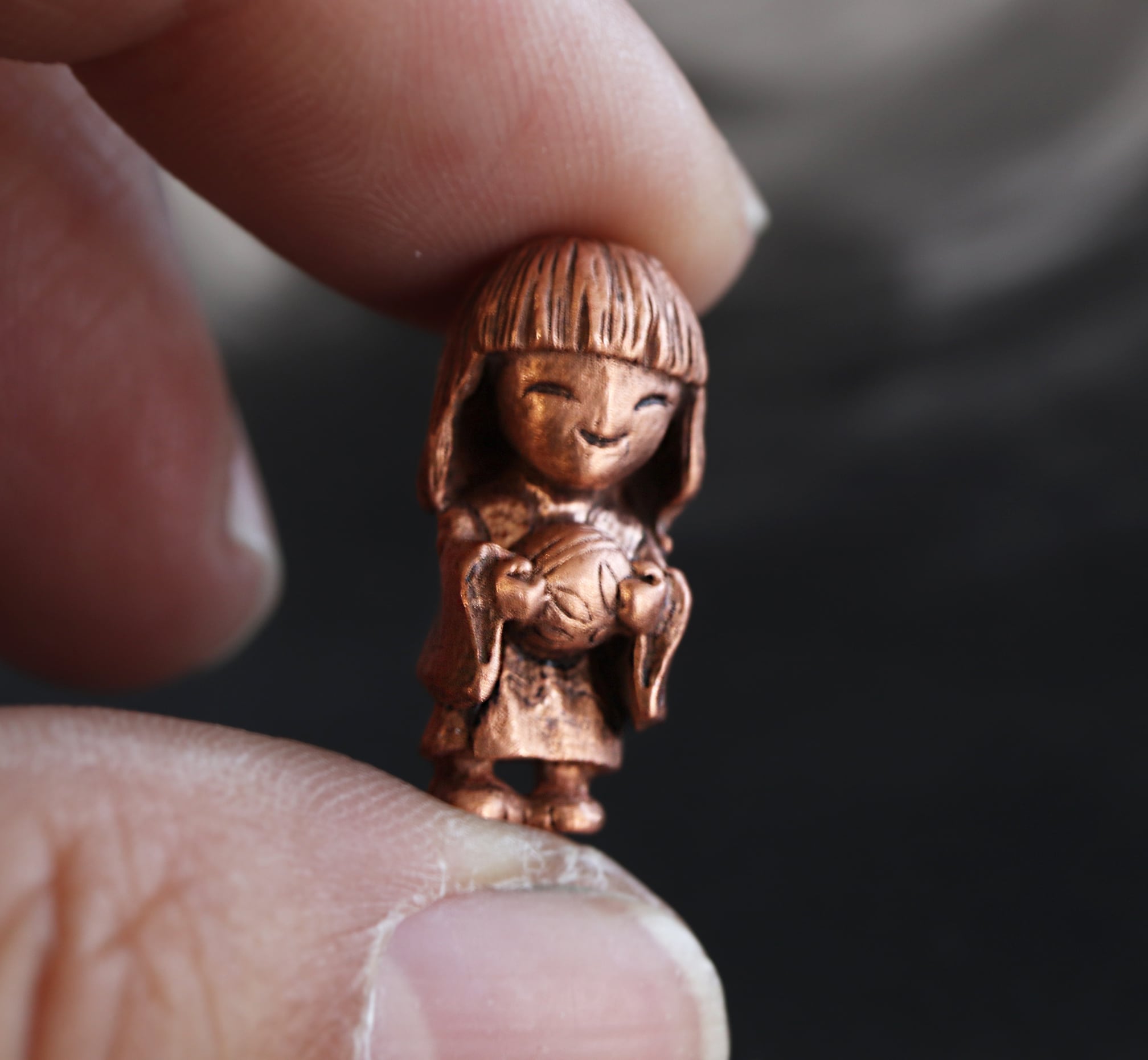 妖怪 幸運を願う 座敷わらし (659-311/ 純銅製根付・ストラップ)