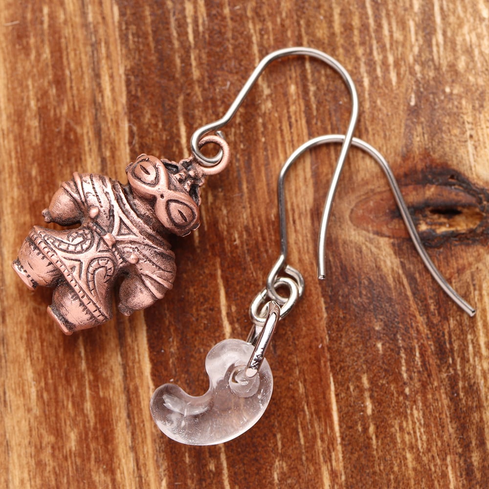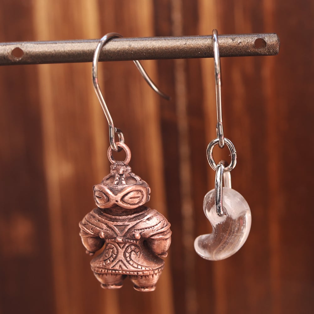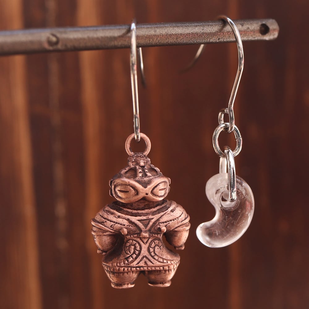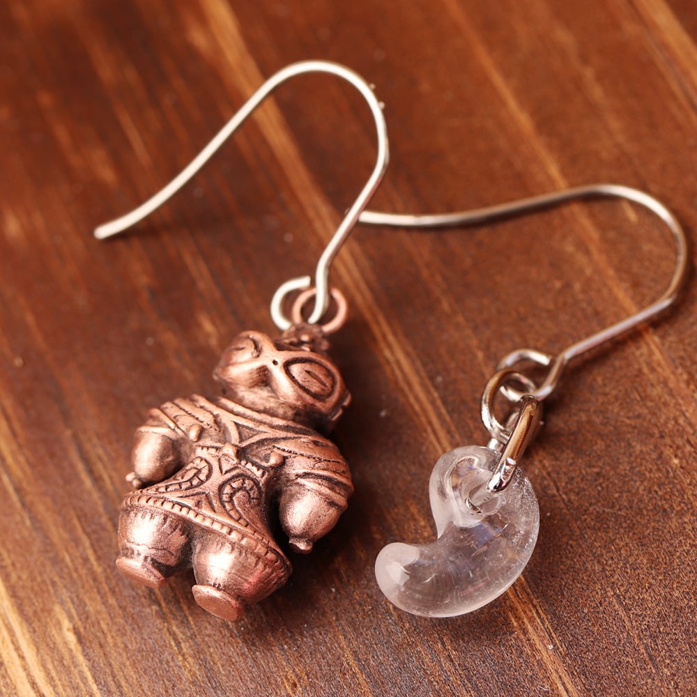 縄文 豆土偶 「遮光器土偶と水晶勾玉」のピアス (659-457/純銅製)
