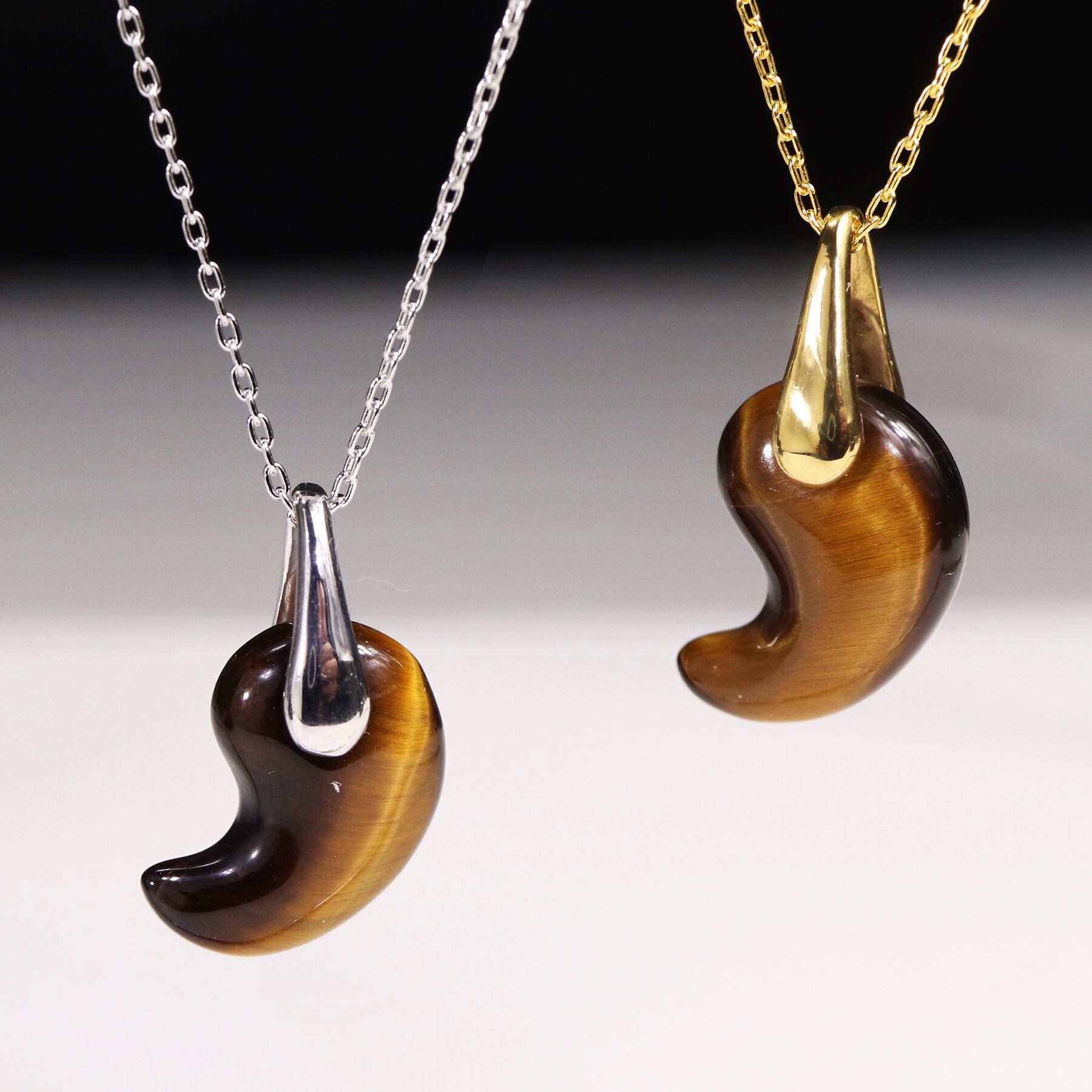 勾玉のシルエットをそのまま感じられるタイガーアイのネックレスです。