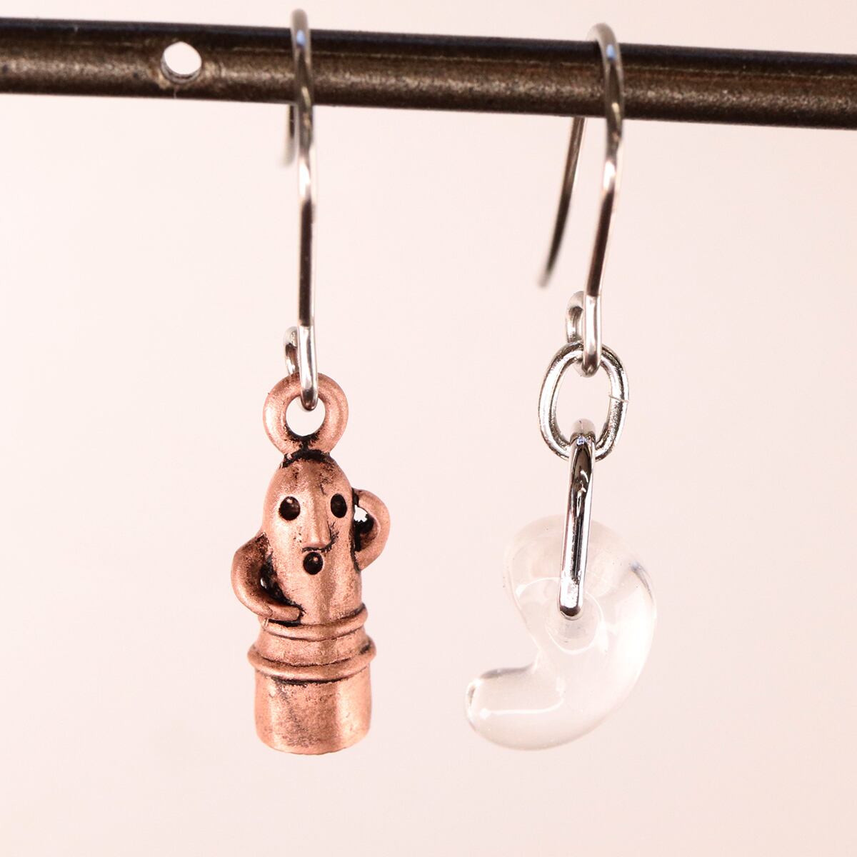 踊る埴輪&水晶勾玉フックピアス (659-823/純銅製)