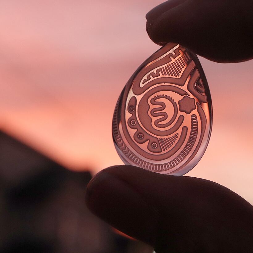 水晶に縄文土器の文様を彫刻したペンダントです。