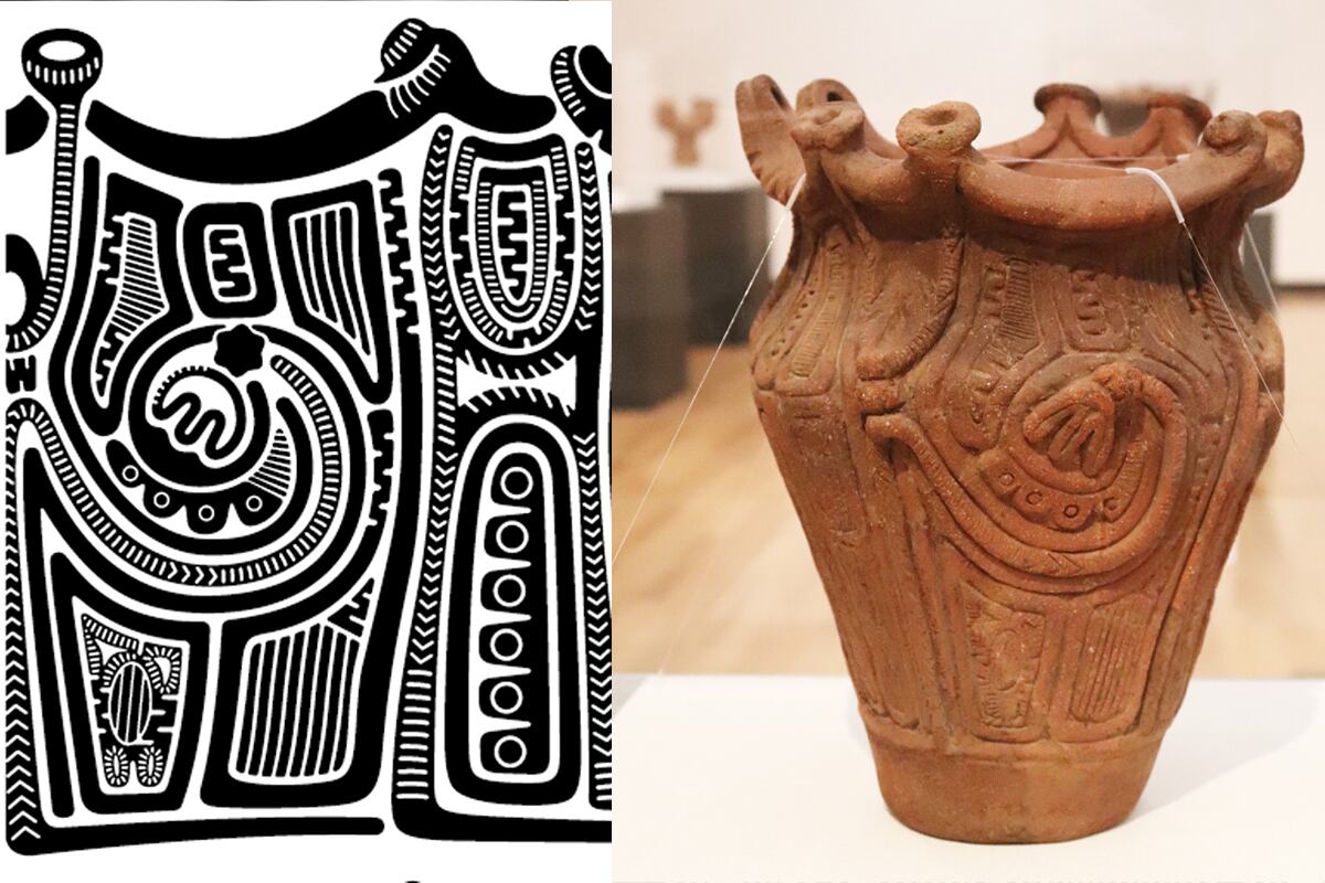 山梨県笛吹市の釈迦堂遺跡博物館に展示された美しい土器。